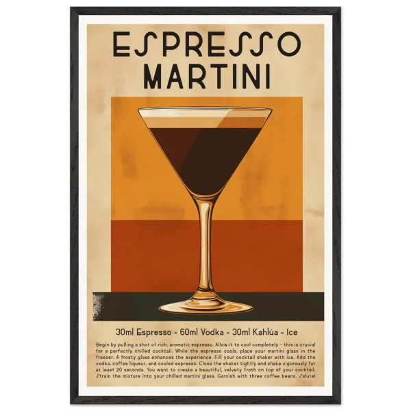 Add a touch of cocktail hour elegance to your home. This vintage Espresso Martini poster, with its art deco style, makes a sophisticated addition to any kitchen wall art collection.